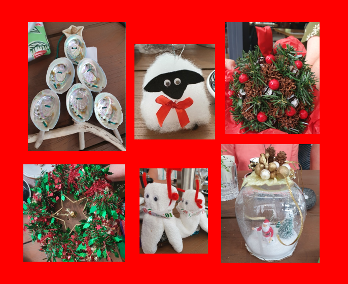 - A Christmas tree made out of driftwood and decorated with mini paua shells (specifically grown for chefs not undersized) and topped with a starfish (Kiwiana)